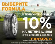 • При покупке летних автомобильных шин Formula, участвующих в данной акции, цены включают скидку 10%;