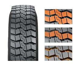Грузовые шины Hankook DM03 предназначены для ведущих осей строительной и грузовой техники, эксплуатируемой на смешанных типах дорог.