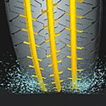 Оптимизированное распределение давления, по всей ширине протектора, обеспечило равномерный износ шины. Разнонаправленные блоки протектора разной геометрической формы, с многочисленными разнонаправленными ламелями способствуют отличному сцеплению даже при неполной загрузке автомобиля.
