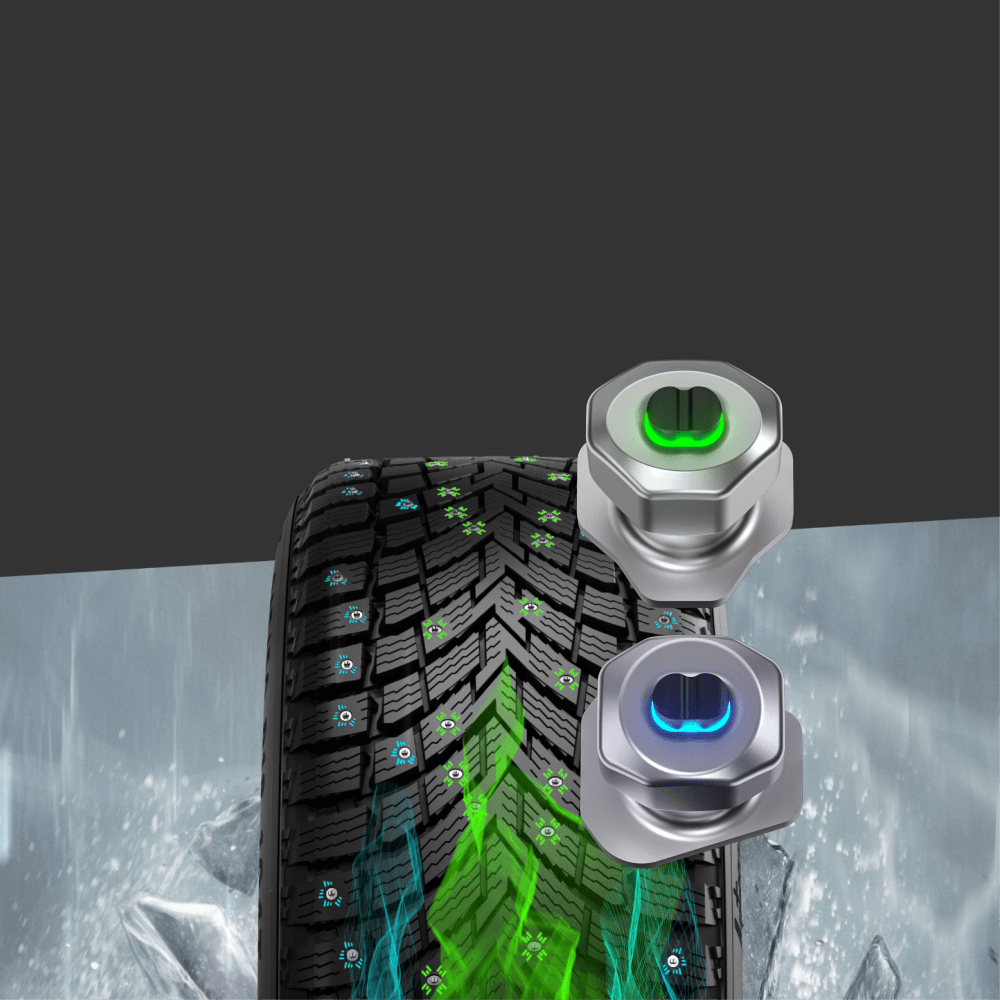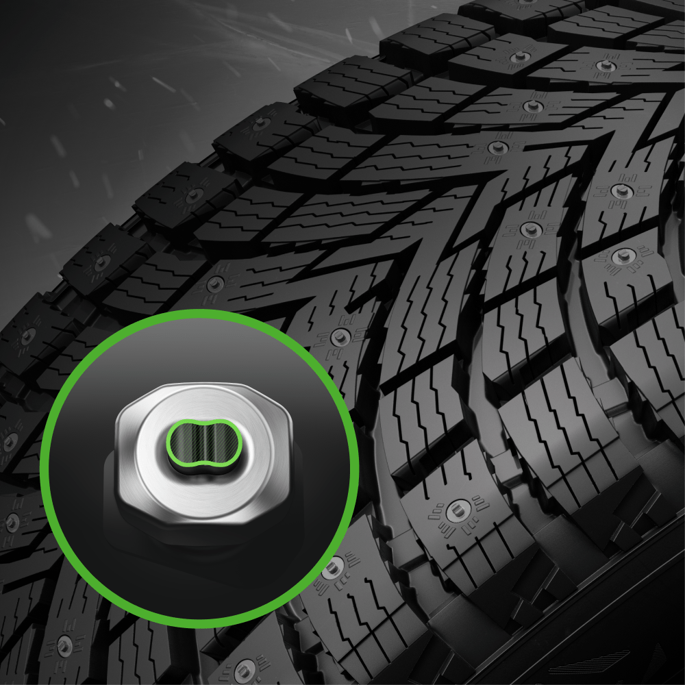 Благодаря скошенной кромке корпуса шип начинает работать уже при первой поездке на новом комплекте шин. Кромка скошена в ключевых боковых точках, в которых шина входит и выходит из пятна контакта, таким образом сердечник обеспечивает плотное и активное сцепление с самого начала эксплуатации шин. Сердечник, вгрызающийся в ледяную поверхность, способствует эффективному торможению и позволяет автомобилю четко реагировать на действия водителя.