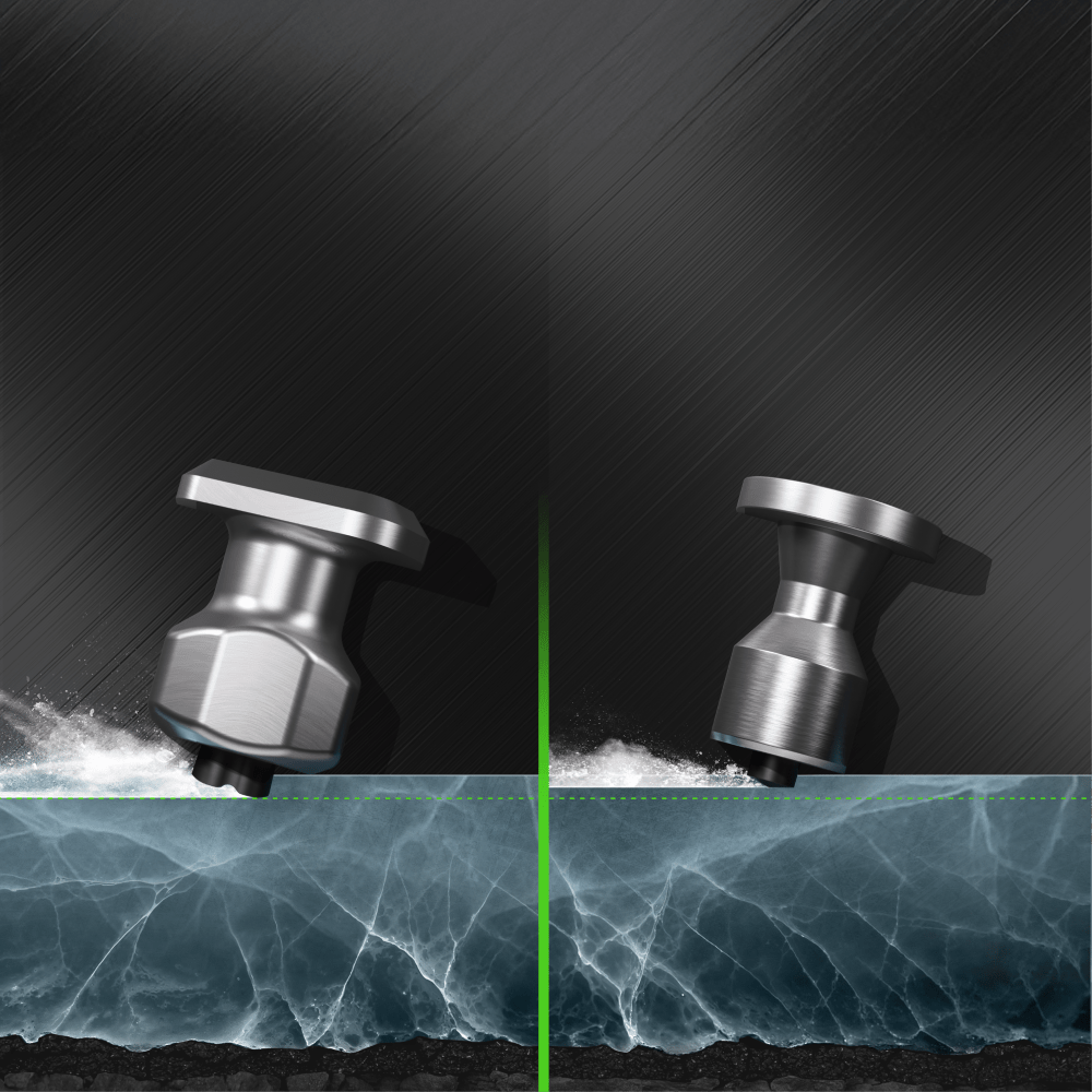 Волнообразная сторона сердечника увеличивает полезную кромку шипа, заставляя шип более активно работать и обеспечивать высокое сцепление при разгоне и торможении. Плавные линии изгибов сердечника предотвращают разрушение или скалывание шипа.