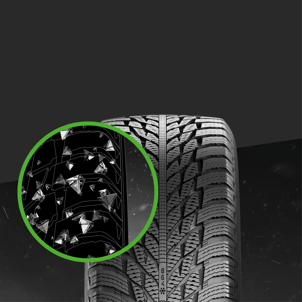 В состав резиновой смеси добавлены мельчайшие частицы из возобновляемого безопасного материала. Эти частицы имеют острые грани, которые проявляются на протекторе по мере износа. В результате сцепление на скользких покрытиях — на льду и утрамбованном снегу — улучшается.