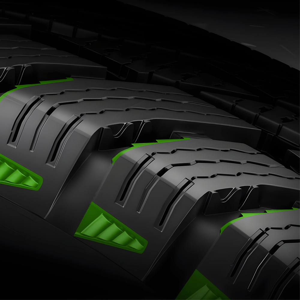 В плечевой зоне протектора расположены усилители торможения. Они создают дополнительные кромки для зацепа и увеличивают площадь контакта с дорогой. В результате тормозной путь на льду и утрамбованном снегу сокращается, а безопасность значительно повышается.