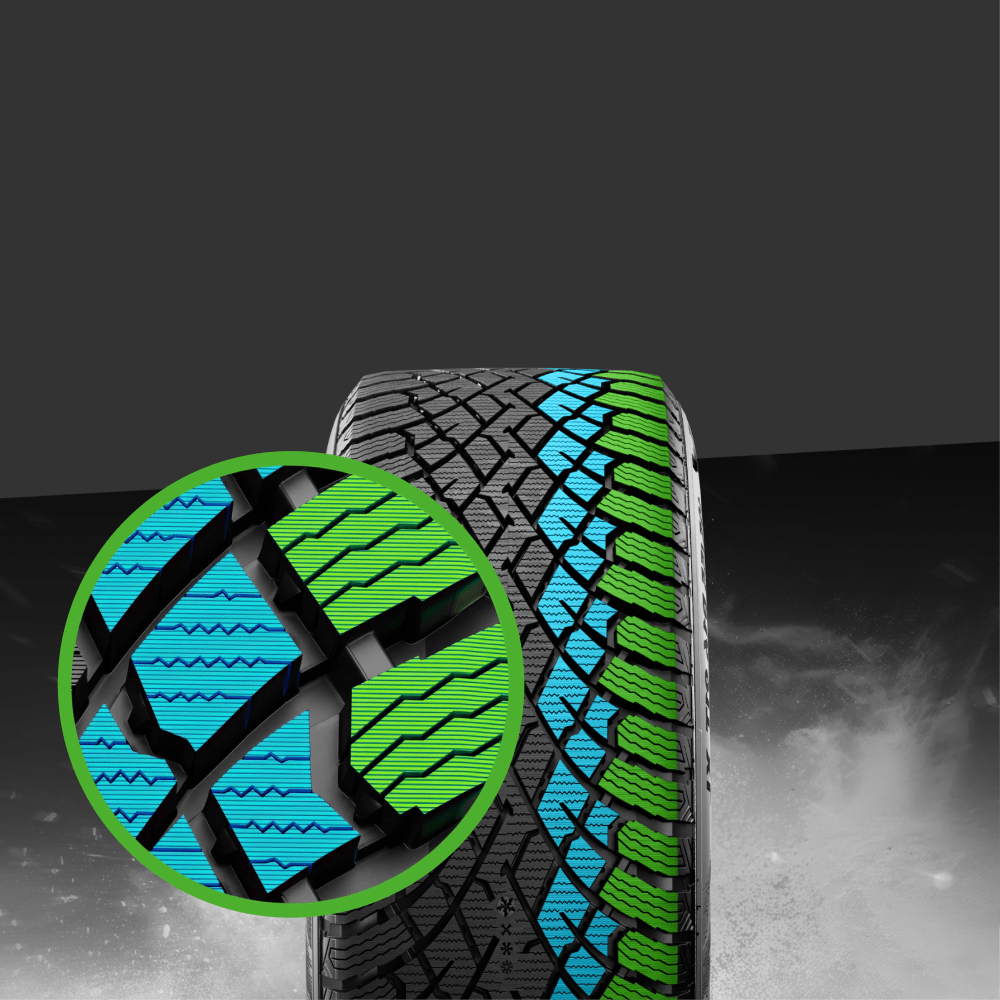Разнонаправленные 3D-ламели Инновационная система разнонаправленных 3D-ламелей IceBlock сочетает перпендикулярные и диагональные элементы, распределяя нагрузку в зависимости от типа манёвра.