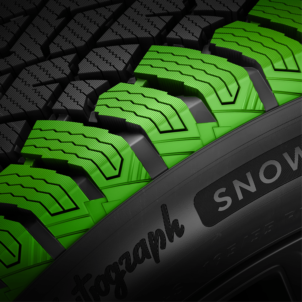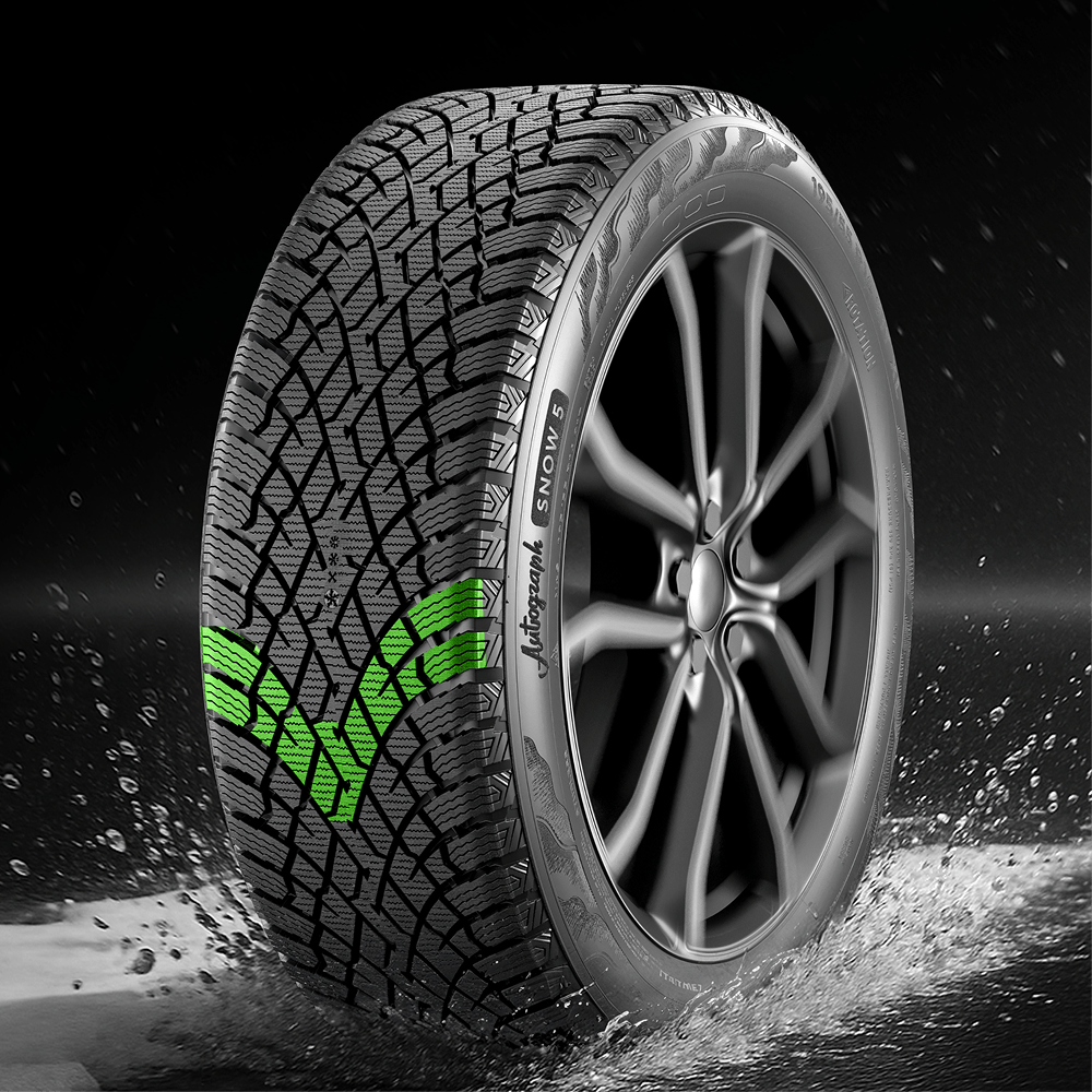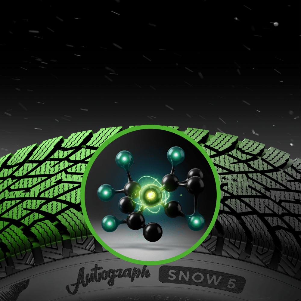 Резиновая смесь шины Ikon Autograph Snow 5 отличается сбалансированным составом, направленным на сцепление при минусовых температурах. Такой состав отличается повышенной эластичностью и прочностью на разрыв и растяжение даже при очень низких температурах, обеспечивая надежность сцепления на зимних дорогах, устойчивость к абразивному истиранию, проколам и разрывам.