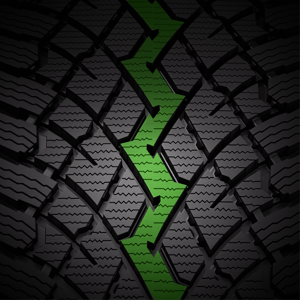 Центральная зона оснащена усиленным центральным ребром жесткости с увеличенным количеством ламелей, где зигзагообразная форма элемента удлиняет V-образные водоотводящие канавки. Такая конструкция оптимизирует отвод воды и снега из пятна контакта, обеспечивая повышенную курсовую устойчивость, снижение вибраций и точность управления в зимних условиях.