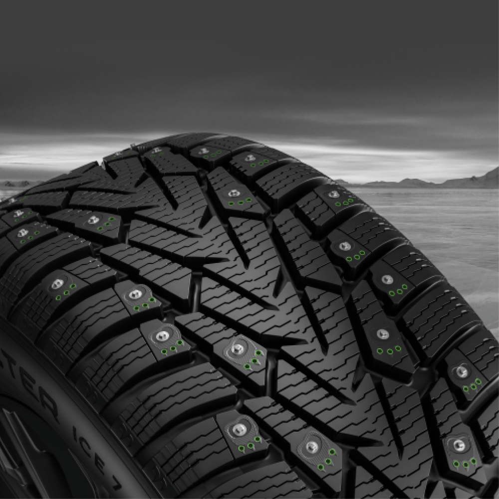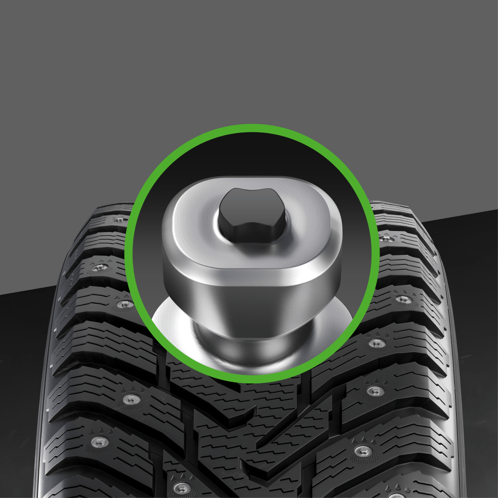 Шипы со сложной конструкцией в виде шестигранника в основании надёжно фиксируются в протекторе, обеспечивая надежное сцепление на обледенелой поверхности. Такая конструкция удерживает шип в протекторе и снижает его износ при интенсивной эксплуатации.
