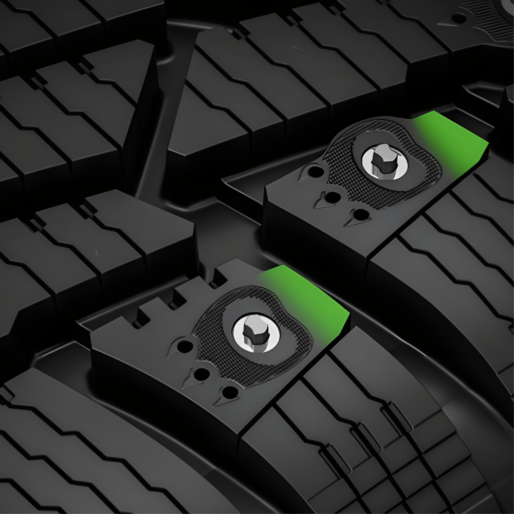 Износостойкий элемент в форме "бабочки" на новом шипе обеспечивает отличное сцепление на льду и минимально воздействует на дорожное покрытие.
