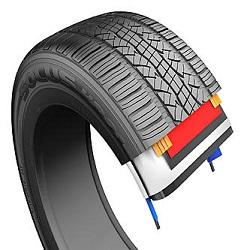 Резиновая смесь протектора с углеродом обеспечивает отличные характеристики на влажной и сухой дороге. Каркас шины, изготовленный по запатентованной технологии ESCOT, с двойным слоем нейлонового брекера обеспечивает высокую степень прочности. Ламели увеличенной глубины гарантируют сохранение эффективных показателей шины на всем сроке ее эксплуатации. Увеличенное количество разнонаправленных канавок и ламелей гарантируют надежное сцепление на мокрой дороге и максимальные всесезонные характеристики шины, даже в суровые зимы.