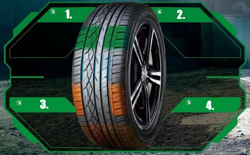 3. Четыре окружные канавки для превосходного отвода воды и минимизации риска аквапланирования.