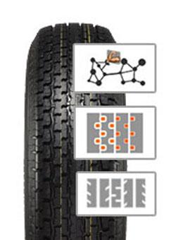 Боковины шины усилены двойным кольцевым ребром, предотвращающим