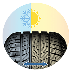 сохраняет рабочие характеристики шины в широком спектре температур.