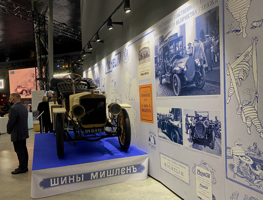 В 1914 году компания Мишлен получила почетное звание «Поставщик Собственного Его Императорского Величества Гаража» - этот исторический период стал центральной темой стенда, посвященного компании Мишлен, выступившей партнером выставки «Царский выезд». Кроме того, посетители выставки узнают о размахе деятельности компании в России, которая даже тогда не ограничивалась продажами шин. Компания Мишлен занималась поддержкой автоспорта, используя новости о победах в рекламе и уделяла много внимания информированию шоферов и владельцев автомобилей об эффективной эксплуатации и ремонте шин. На выставке также экспонируются сопутствующие товары под брендом Michelin, оригинальные фотографии и плакаты. Одно из центральных мест занимает роскошный двойной фаэтон Hispano-Suiza 12/15HP 1908 года выпуска - редкий экземпляр знаменитой марки оснащен оригинальными шинами Michelin. В числе других ретро-легенд на выставке представлены двухместный гоночный Benz, отечественный Руссо-Балт и элегантный Renault.