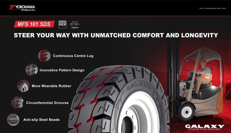 Yokohama Off-Highway Tires представила новую цельнолитую шину Galaxy MFS 101 SDS, разработанную для современных электрических и дизельных вилочных погрузчиков, работающих в самых тяжелых условиях эксплуатации как внутри промышленных и складских помещений, так и снаружи, там, где требуется высокий комфорт вождения и длительный срок службы.