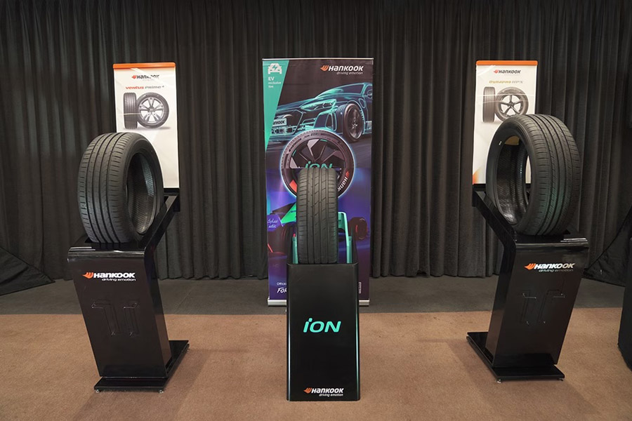 Вторая новинка, Hankook iON, представляет собой шину для электромобилей с комплексом технологий «iON Innovative Technology», который включает четыре технологии, направленные на улучшение общих характеристик электромобилей, а именно: i Sound Absorber (шумность), i Super Mileage (пробег), i Perfect Grip (сцепление) и i Extreme Lightness (сопротивление качению). По сравнению с использованием обычных шин на электромобилях, шины iON способны снизить уровень шума на 18 процентов и имеют на 15 процентов больший срок службы. В настоящее время линейка шин Hankook iON представлена в Индонезии двумя моделями - iON evo и iON evo SUV, которые доступны в 5 типоразмерах от 19 до 22 дюймов.