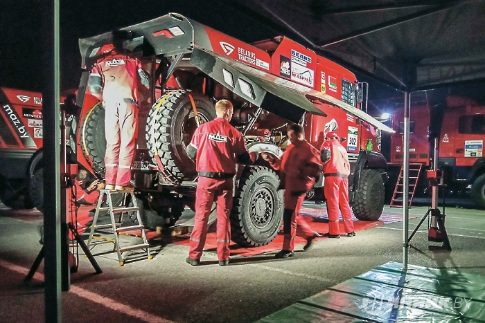 «Возможно, не все уже припомнят, что партнерство «Белшины» и «МАЗ-СПОРТавто» стартовало еще в 2018 году. Тогда же на ралли в Астрахань ездил руководитель отдела эксплуатационных испытаний шин и технического сопровождения продукции Владимир Жучков. На этой гонке мазовцы впервые использовали наши шины 14.00R20 модели BEL-248. Они только вышли в серию, это был еще достаточно сырой продукт, в проекции на то, какие сверхзадачи ему предстояло решать. Члены команды тактично отметили некоторые положительные моменты, но сотрудничество года на два поставили на паузу, - рассказывает Борис Кетов. - В 2020 году произошел рестарт: у МАЗа возникли сложности с приобретением импортных шин, актуализировалась необходимость в разработке отечественного продукта, способного стать достойной заменой творениям предыдущих партнеров. Честно, с долей опасения приступали к этой работе. Но наш руководитель - начальник УИТС Михаил Чернявский - сумел мобилизовать коллектив, разъяснив важность дела: и имиджевую, и практическую.