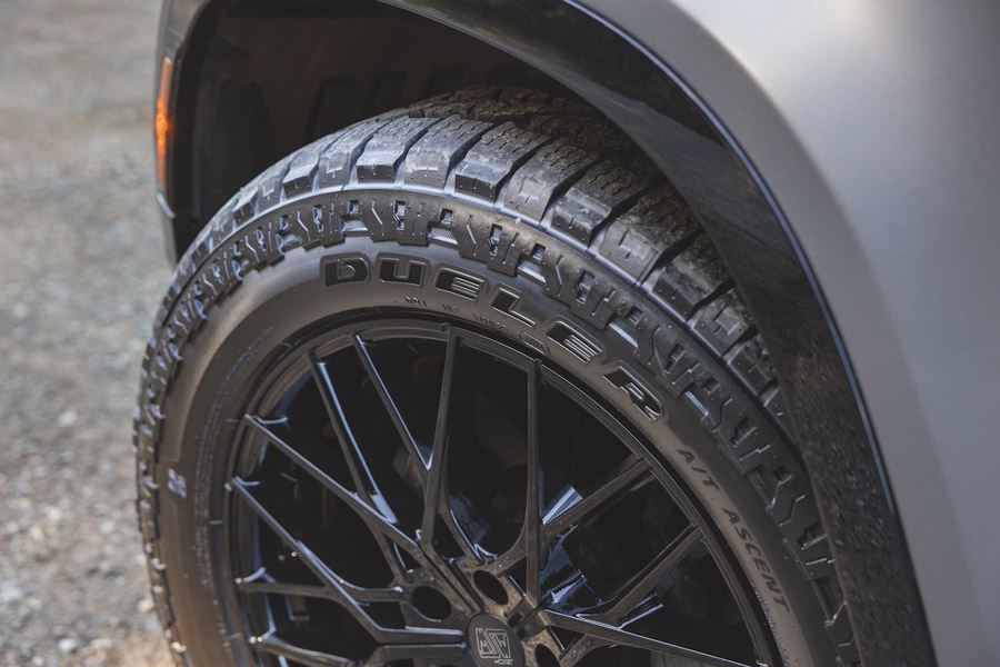 Эксплуатационные качества новой шины обусловлены новым агрессивным рисунком протектора, увеличенная глубина которого обеспечивает максимальную производительность на протяжении всего срока службы шины. Этот рисунок включает в себя выталкиватели камней, различающиеся по ширине плечевые блоки и канавки между ними для снижения уровня шума, а также многочисленные глубокие взаимоблокирующиеся 3D-ламели для обеспечения превосходного сцепления на снегу. Агрессивный рисунок протектора выходит на боковину через квадратное плечо в виде глубоких контрфорсов с шумоизолирующими ламелями. Шина Dueler A/T Ascent имеет уникальный износостойкий состав резиновой смеси, который позволяет увеличить срок службы, обеспечивая впечатляющую гарантию на пробег в 60 000 миль без ущерба для характеристик производительности.