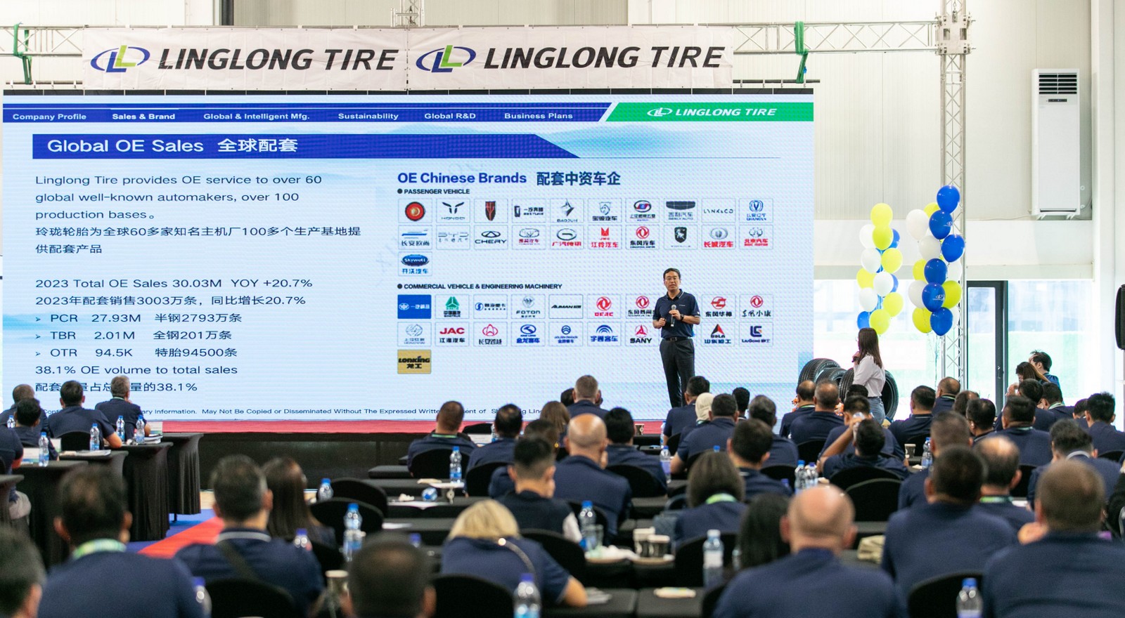 Вице-президент Linglong Tire Сюй Юнчао проанализировал ситуацию на мировом шинном рынке, озвучил последние данные о продажах компании и вручил награды наиболее успешным дилерам. Представитель отдела разработок Linglong рассказал о новейших продуктах и технологиях, которые компания внедрила в производство легковых, грузовых и OTR-шин.