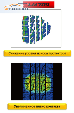 модели Dunlop SP Sport LM отмечали и раньше, но разработчики решили не останавливаться на достигнутом. За счёт смещения шашек и предотвращения шумаот прямых продольных блоков протекторановая шина стала тише на 13 %. Кроме того, за счёт увеличения пятна контакта меньше риск сорвать машину в занос. Ну и ещё один плюс - это равномерный износ новой покрышки.Так же в Dunlop поработали над тем, чтобы резина служила как можно дольше. Теперь даже при 90 процентном износе на шине остаётся работающий рисунок протектора. И таким образом жизненный цикл Dunlop SP Sport LM 704 вырос на 25%.