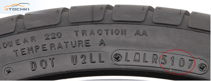 Производители автомобильных шин не устанавливают для своей продукции срок годности. Тем не менее, технические специалисты не рекомендуют использовать покрышки, включая запасную, если они были произведены более 10 лет назад, даже если на них нет видимых повреждений. Узнать возраст можно на ее боковине, где следом за буквенным обозначением DOT идет код, в последних 4-х цифрах которого зашифрована неделя и год производства. Так, например, DOT U2LL LMLR5107 будет означать, что шина произведена в 51 неделю 2007 года.
