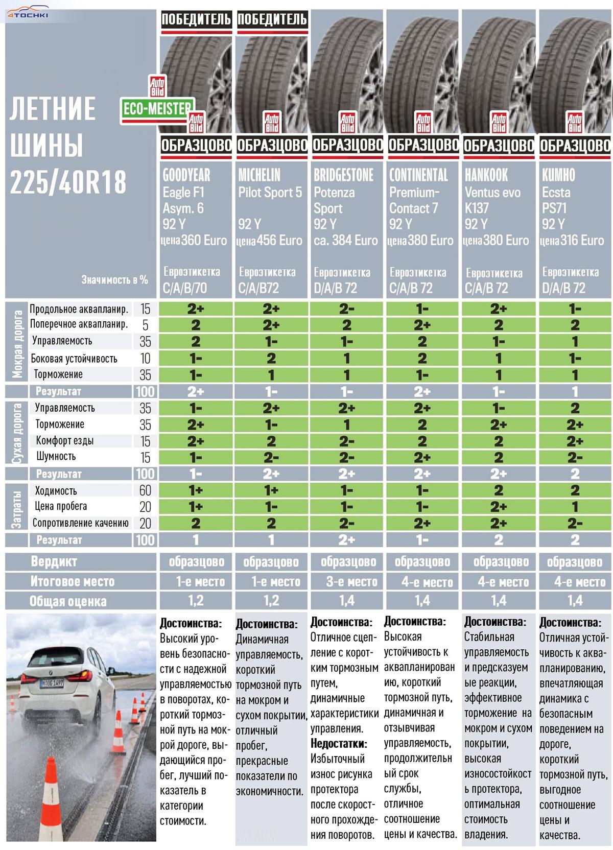 Но есть и хорошая новость. Около половины участниц финального раунда получили оценки «образцово» или «хорошо». Первое место поделили Goodyear и Michelin, сразу за ними - Bridgestone. Четвертое место заняло трио: Continental, Hankook и Kumho с одинаковым количеством набранных баллов.