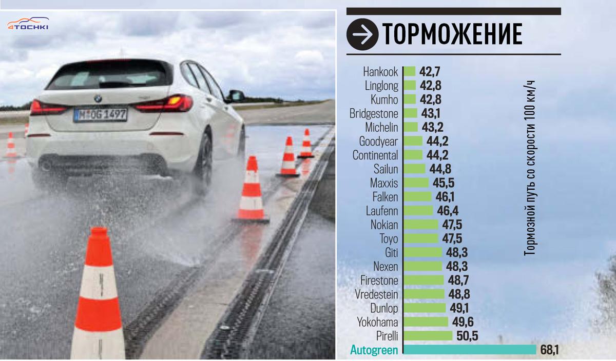 В то время как топовые продукты отличаются лишь в нюансах, результаты протестированной бюджетной шины Autogreen на мокрой поверхности оказались катастрофическими.