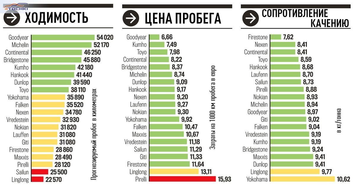 И, наконец, отметим прогресс китайских брендов. Шины Sailun и Linglong доказали, что они могут конкурировать с ведущими мировыми производителями. Их слабое место - ходимость (ресурс пробега), но по безопасности они даже превзошли модели некоторых известных марок.