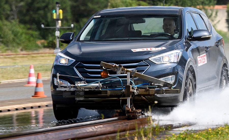 Тесты на аквапланирование проводятся на прямом участке с контролируемым увлажнением, глубина воды постоянна и составляет девять миллиметров, а автомобиль движется по колее, чтобы все тестируемые шины шли по точно такому же следу. Значения регистрируются во время разгона, и аквапланирование наступает, когда теряется сцепление ведущих колес. Измерение прекращается, когда вращающиеся колеса начинают вращаться на 15 процентов быстрее фактической скорости автомобиля.