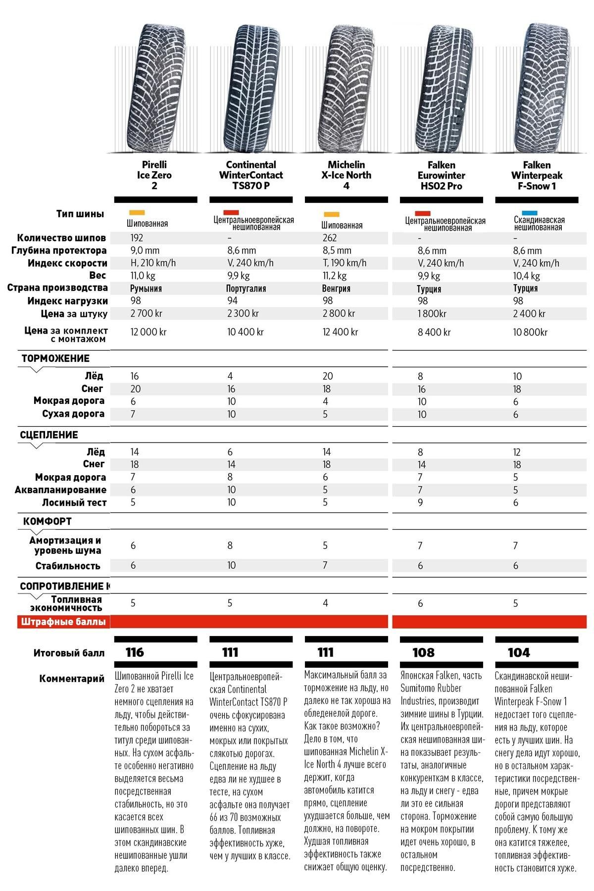 Все шины оцениваются по одному и тому же эталону и по одной и той же шкале баллов, а это значит, что все результаты можно напрямую сравнивать друг с другом - независимо от того, шипованные это, скандинавские или центральноевропейские нешипованные шины.