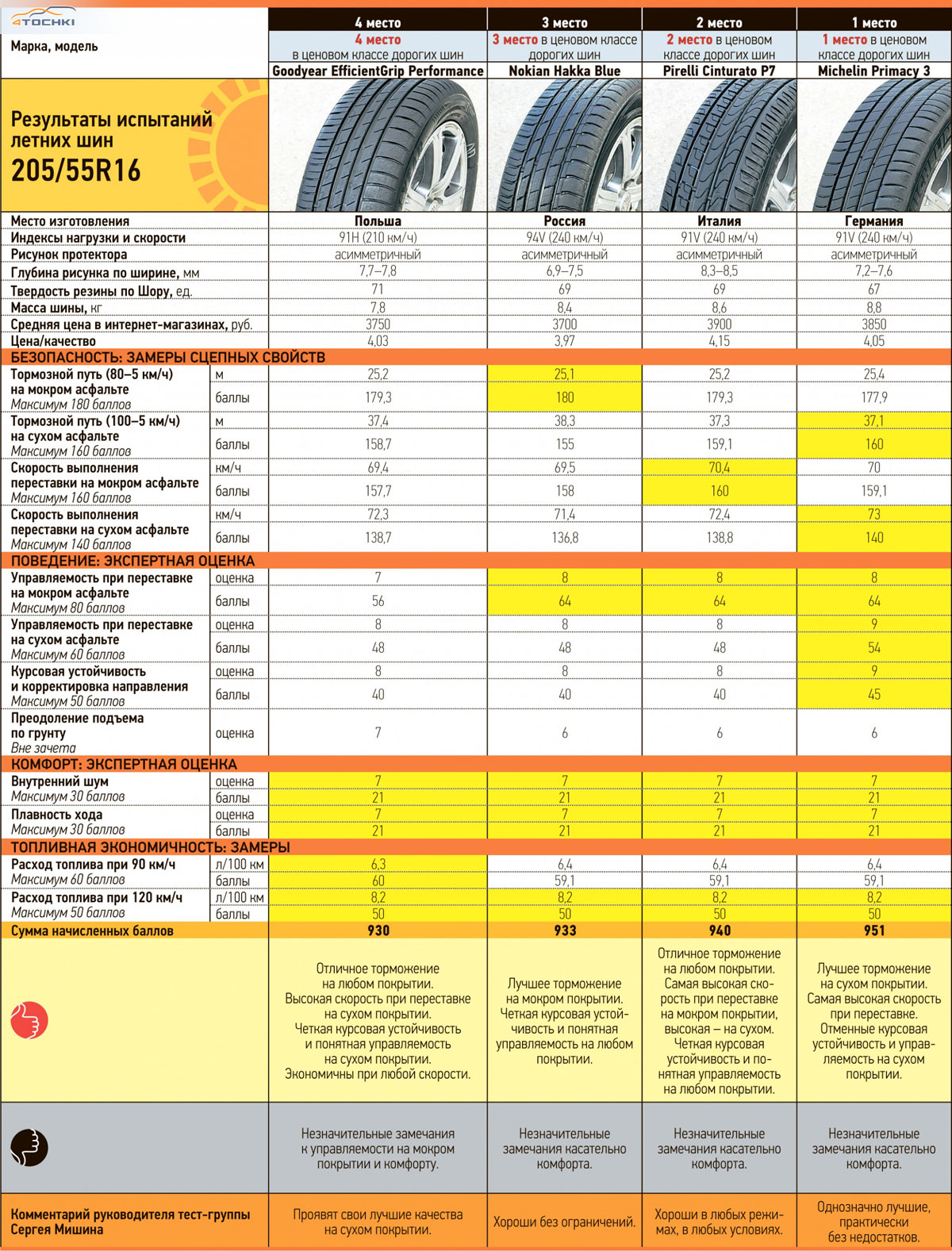 Основная часть соперников представлена в популярном размере 205/55R16 скоростной категории V (240 км/ч), но есть пара медленных (Н – 210 км/ч) и тройка более скоростных (W – 270 км/ч). Примечательно, что быстроходные