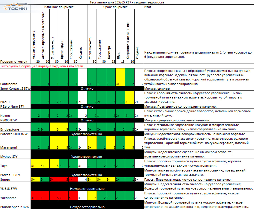 Преимущество остается за Conti и Bridgestone. Yokohama и Sunew остаются за границей безопасности.