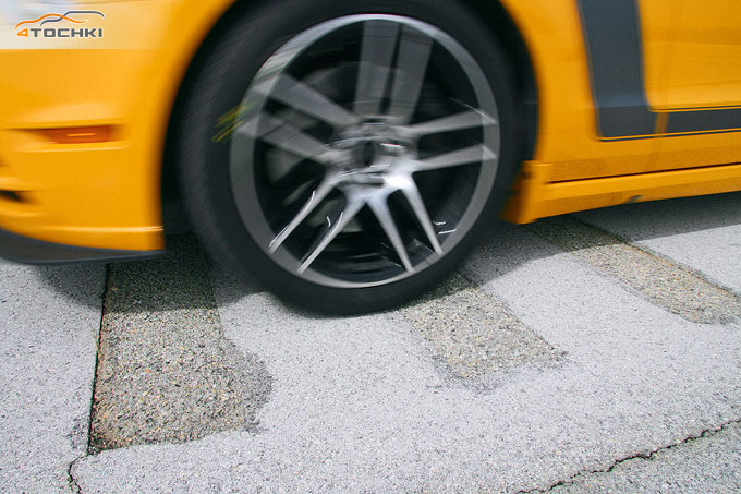 Впечатляет то, как «Босс» ведет себя на трассе, что в очередной раз подтверждает - для испытания спортивных шин на гоночном треке он является идеальным вариантом. Несмотря на в целом хорошие результаты комплекты автошин Bridgestone и Goodyear показали тенденцию к недостаточной поворачиваемости. Шины Hankook Ventus S1 Evo оказались очень быстрыми, за что и получили дополнительные баллы. Однако
