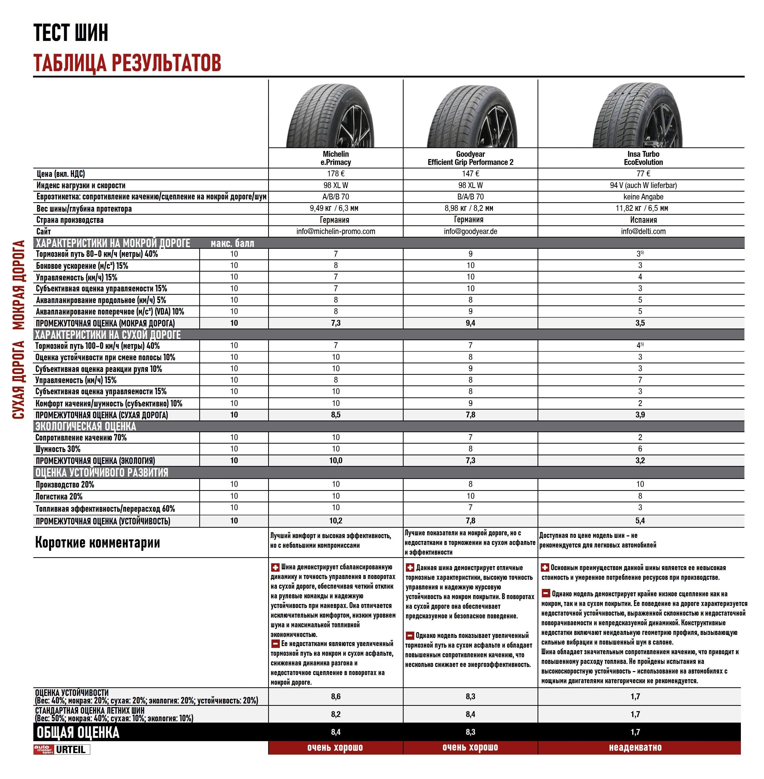 Теги: летние шины, тесты летних шин, Auto Motor und Sport, Continental UltraContact NXT, Falken e.Ziex, Insa Turbo EcoEvolution, Michelin e.Primacy, Bridgestone Turanza 6, Goodyear EfficientGrip Performance 2
