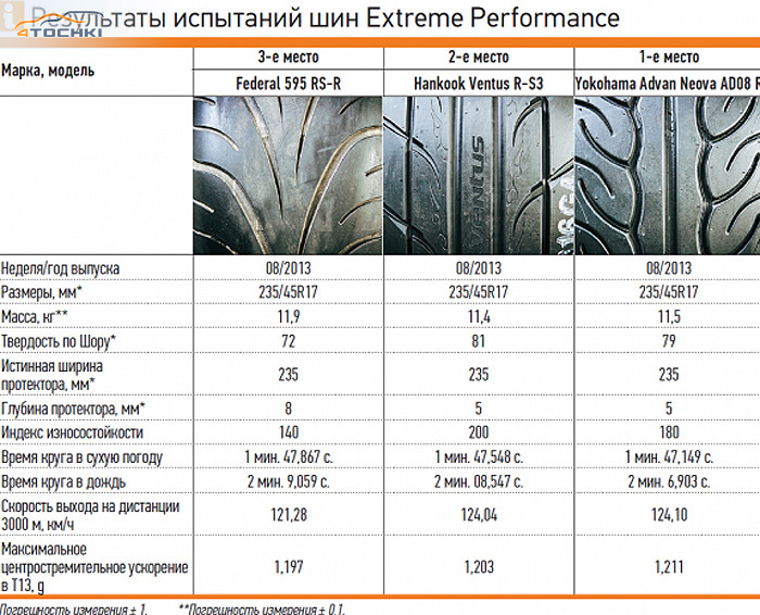 Что касается результатов теста, то опытным гонщикам-любителям мы советуем иметь два комплекта – Hankook Ventus TD для сухой погоды и Toyo Proxes R888 для сырой. Начинающим – Yokohama Advan A048 или Federal FZ-201: они заранее начинают сигнализировать о предстоящем срыве оси. Лучшее время на них не показать, но вероятность вылета будет ниже. Экспериментаторам могут приглянуться Kumho Eсsta V700.