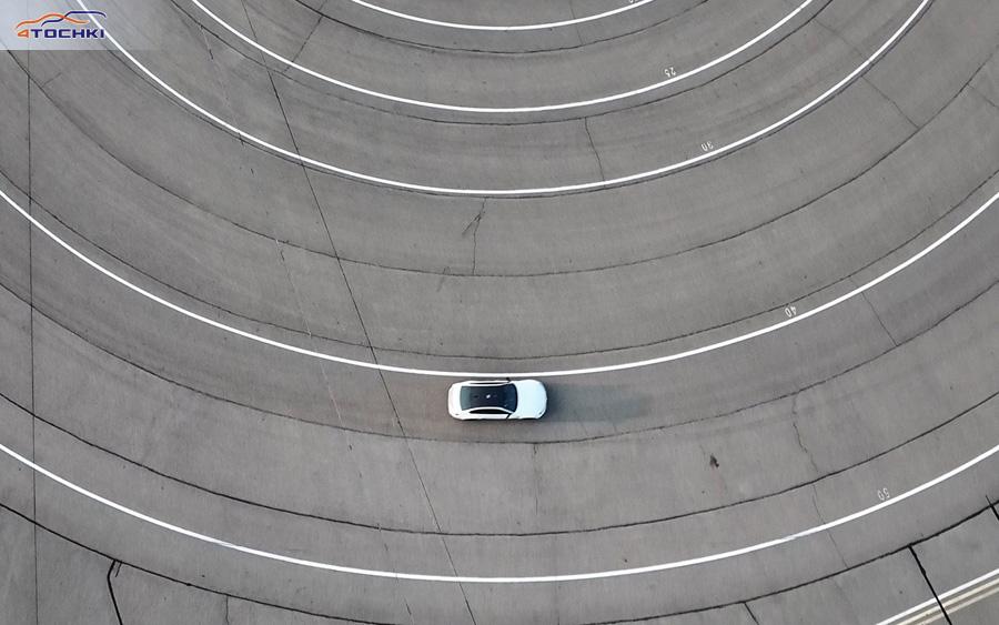 Эффективность прохождения поворотов и пределы боковой устойчивости шин была проверены в ходе испытаний на круговой трассе. Проще говоря, тестировщики фиксировали предельную скорость в повороте непосредственно перед скольжением. Кроме того, проверялись такие вещи, как характеристики рулевого управления и время восстановления после превышения пределов, что отражается на общей управляемости.
