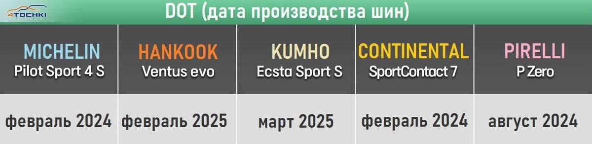 К сожалению, производство купленных на рынке шин Michelin и Continental относится к началу 2024 года. Однако каждый производитель утверждает, что проблем с шинами не возникнет в течение трех лет, если соблюдать обычные стандарты хранения, поэтому возраст тестируемых шин не повлиял на результаты.