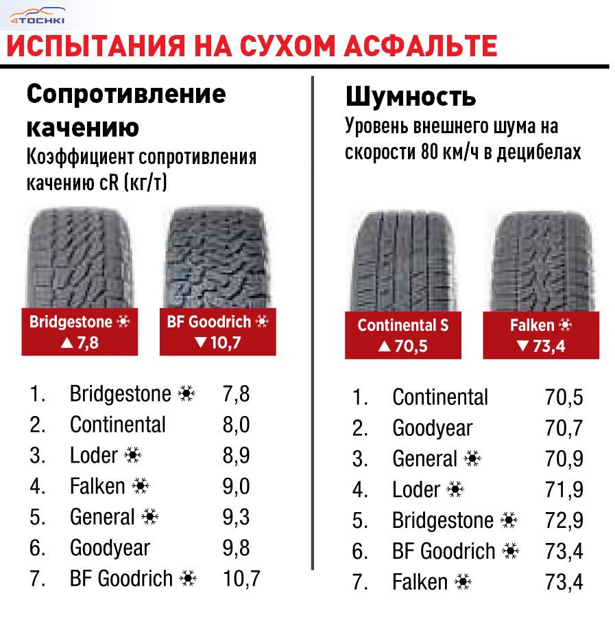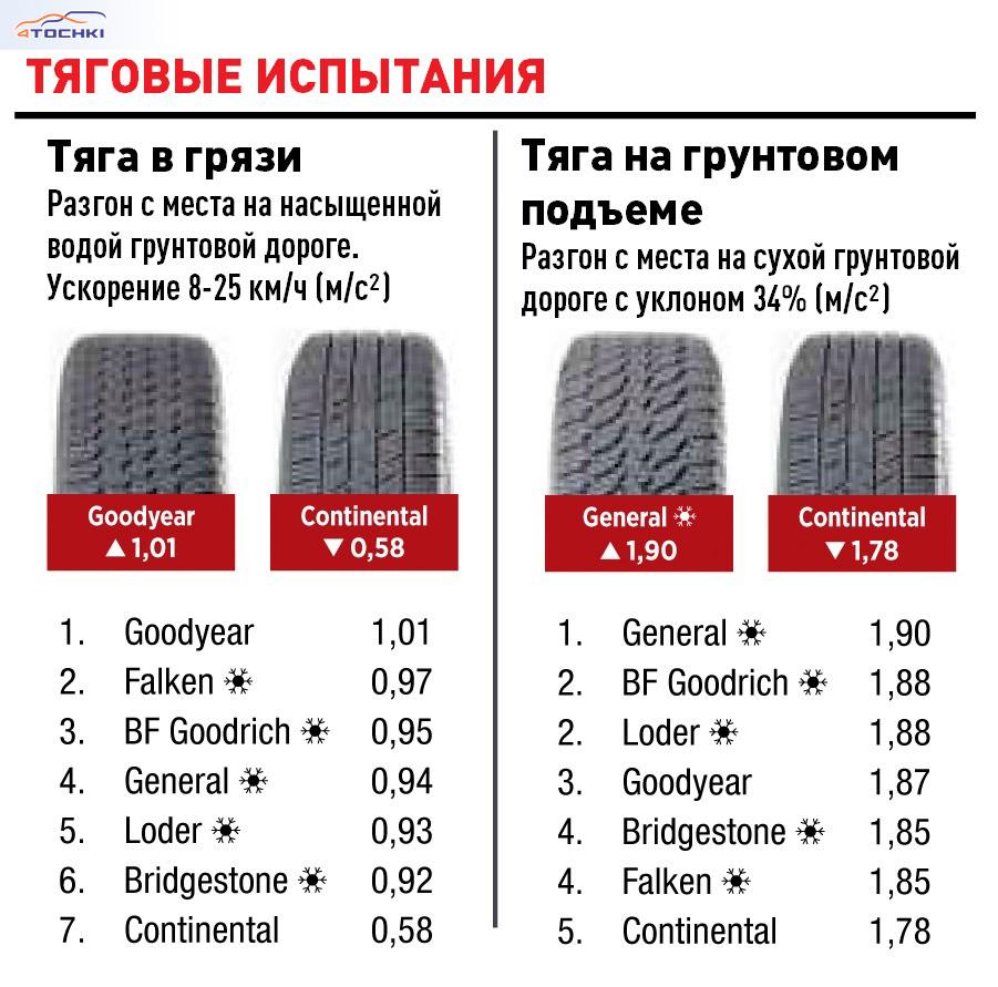 Естественно, что Continental и Goodyear не принимают участие в сравнении, так как не имеют сертификата на использование в зимних условиях.