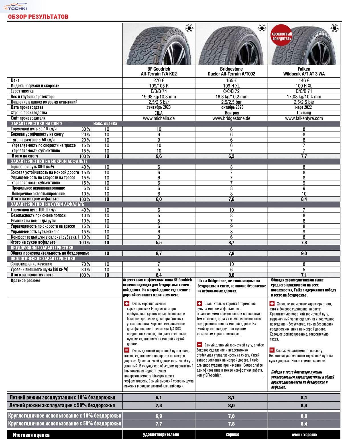 Теги: вседорожные шины, тесты вседорожных шин, Auto Motor und Sport, BFGoodrich All-Terrain T/A KO2, Bridgestone Dueler A/T002, Falken Wildpeak A/T AT3 W/A, General Grabber AT3, Loder AT1