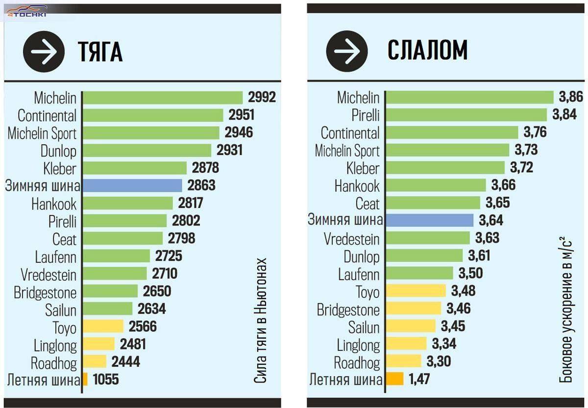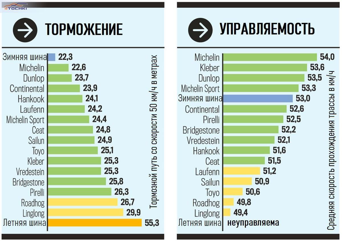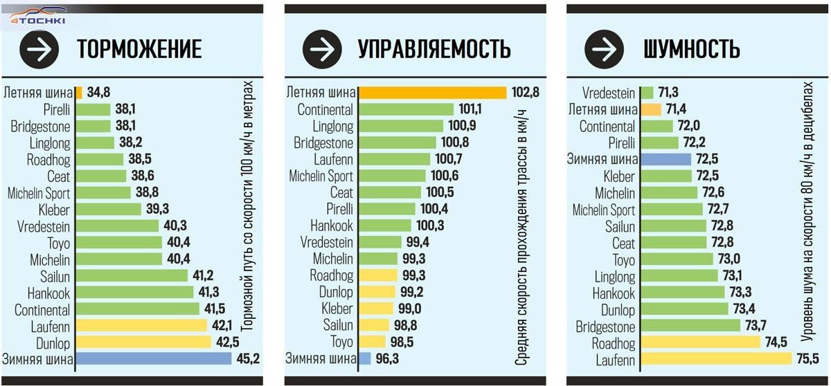 На сухой дороге высоту планки задают Pirelli, Bridgestone и спортивная версия Michelin. Бюджетные шины Ceat и Linglong показывают весьма достойные результаты. Заметно теряет позиции Dunlop All Season 2, которой с трудом удалось пройти квалификацию. Но, чистая летняя шина остается недосягаемой по ходовым качествам на сухой трассе. Тот, кто управляет спортивным компактным автомобилем, получает с ней максимум удовольствия от вождения. В то время как зимние шины летом следует снимать с автомобиля.