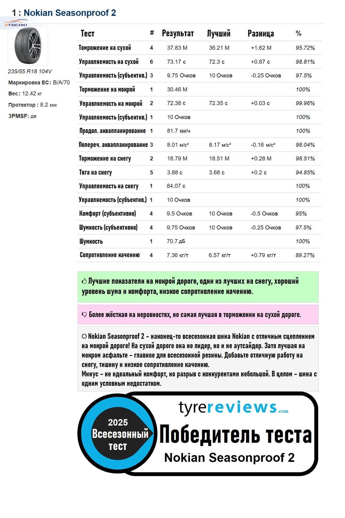 Весной этого года Nokian Tyres представила новую линейку всесезонных шин Seasonproof 2, производство которой размещено на новом высокотехнологичном заводе в Румынии. Финский производитель шин надеется, что эта модель наконец выведет его в лидеры всесезонного рынка, и, конечно, эксперты из Tyre Reviews не могли не проверить это.
