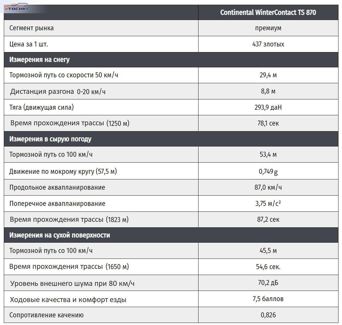 Continental победила в большинстве тестовых дисциплин благодаря своим превосходным характеристикам. Немецкая шина обеспечивает самый короткий тормозной путь на всех типах покрытия, что крайне важно для безопасности. Она также отличается превосходной управляемостью и высокой точностью рулевого управления. Кроме того, WinterContact TS 870 бесшумна и обладает низким сопротивлением качению.