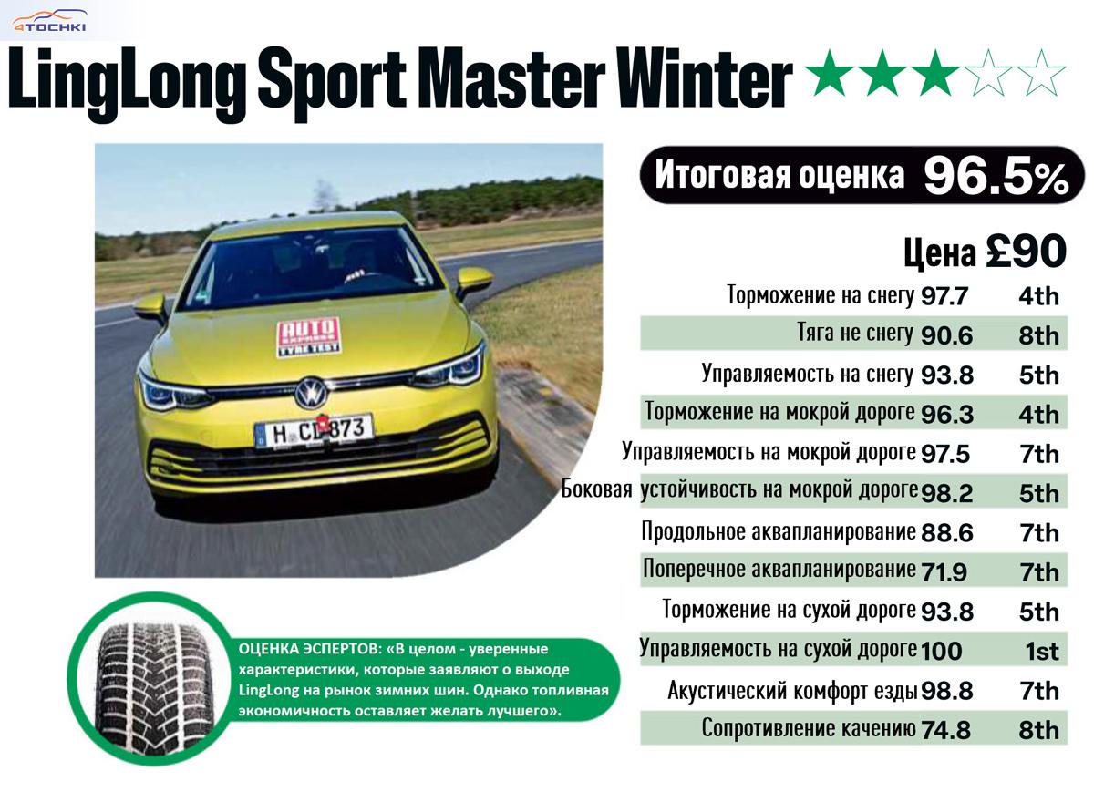 Дебют зимней шины LingLong в тестах Auto Express принес ей первую высшую оценку - самое быстрое время на трассе управляемости на сухой дороге. Это не самый важный критерий в зимнем тесте, но итоговое пятое место позволило LingLong опередить некоторые более известные бренды.