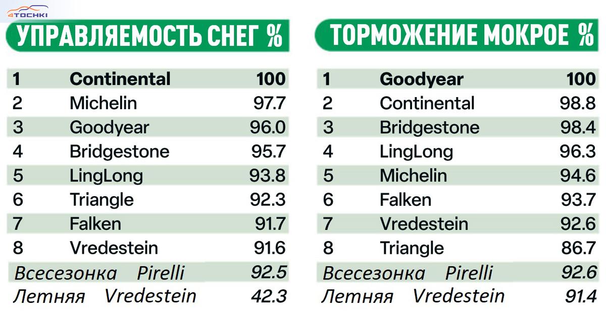 Если вы не можете позволить себе второй комплект шин, то вам будет интересно узнать, как показали себя в тех же тестах всесезонная и летняя шины.