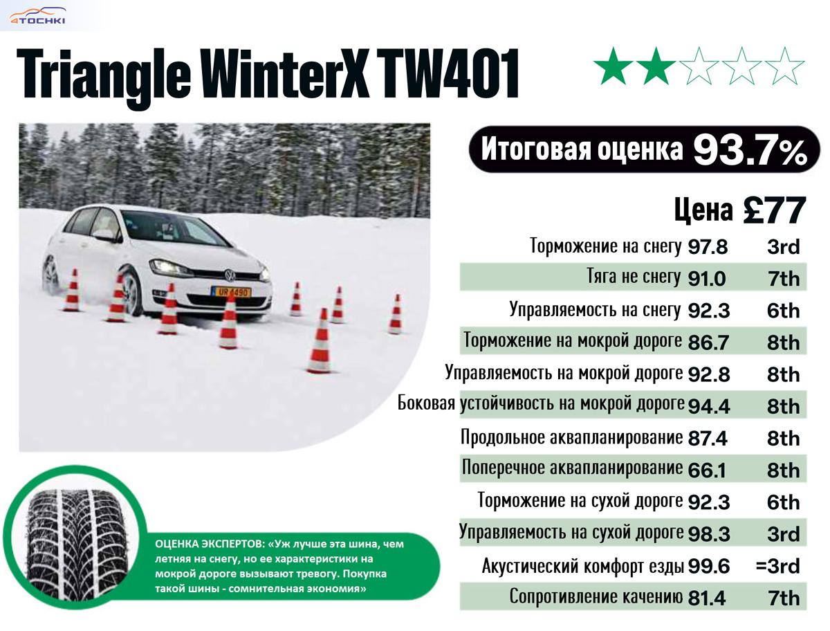 Бюджетная шина Triangle показала себя достойно на снегу и неплохо на сухой дороге, но оказалась на последнем месте во всех тестах на мокрой поверхности.