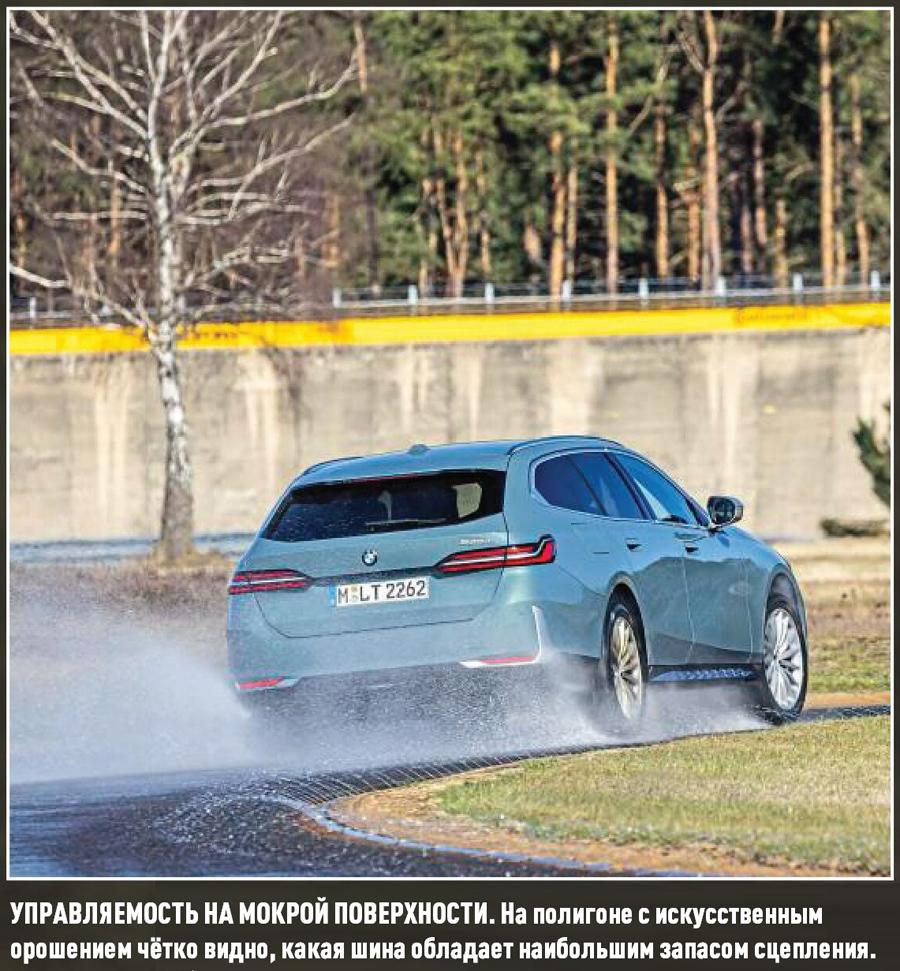 В качестве тестового автомобиля использовался представительский универсал BMW 520d Touring. Его турбодизельный двигатель с технологией Mild-Hybrid мощностью 145 кВт (197 л.с.) и крутящим моментом 400 Нм обладает достаточной мощностью, чтобы вывести установленные 19-дюймовые колёса на пределы их возможностей даже на дороге с хорошим сцеплением.
