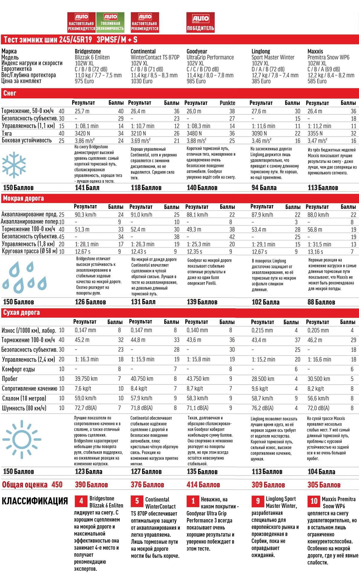 Действительно ли премиальные шины значительно лучше ведут себя на дороге, чем более доступные аналоги среднеценового сегмента или бюджетные шины из Китая? В поисках ответа на этот вопрос журналисты из немецкого издания Auto Zeitung провели тщательный сравнительный тест 10 моделей зимних нешипованных шин в размере 245/45R19 на снегу, мокром и сухом покрытии. Кроме того, в лабораторных условиях они проверили долговечность всех протестированных моделей.