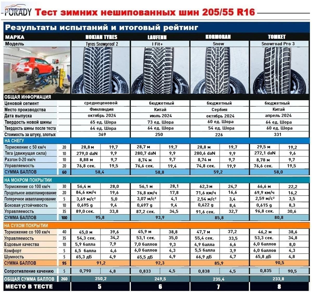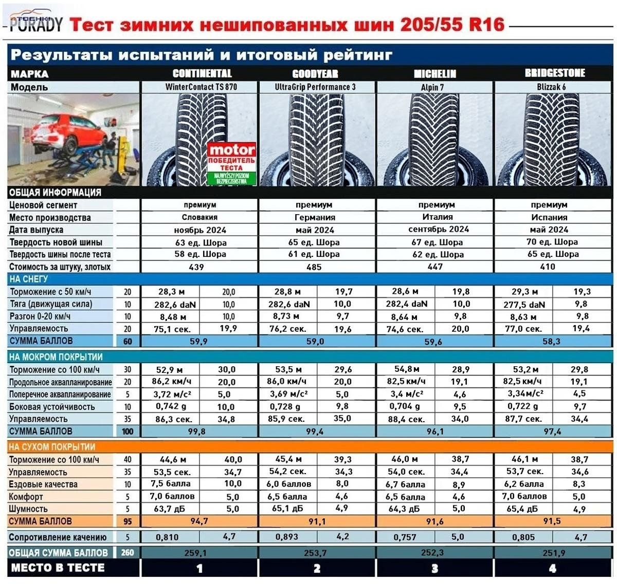 Хорошая зимняя шина должна быть безопасна не только при езде по снегу, но и на мокром и сухом асфальте. В профессиональном тесте, проведённом в специализированных исследовательских центрах Германии и Швеции, эксперты польского автожурнала Motor сравнили характеристики зимних нешипованных шин размером 205/55R16 из разных сегментов рынка - от бюджетного до премиум-класса. Стоит ли переплачивать за более дорогие модели?