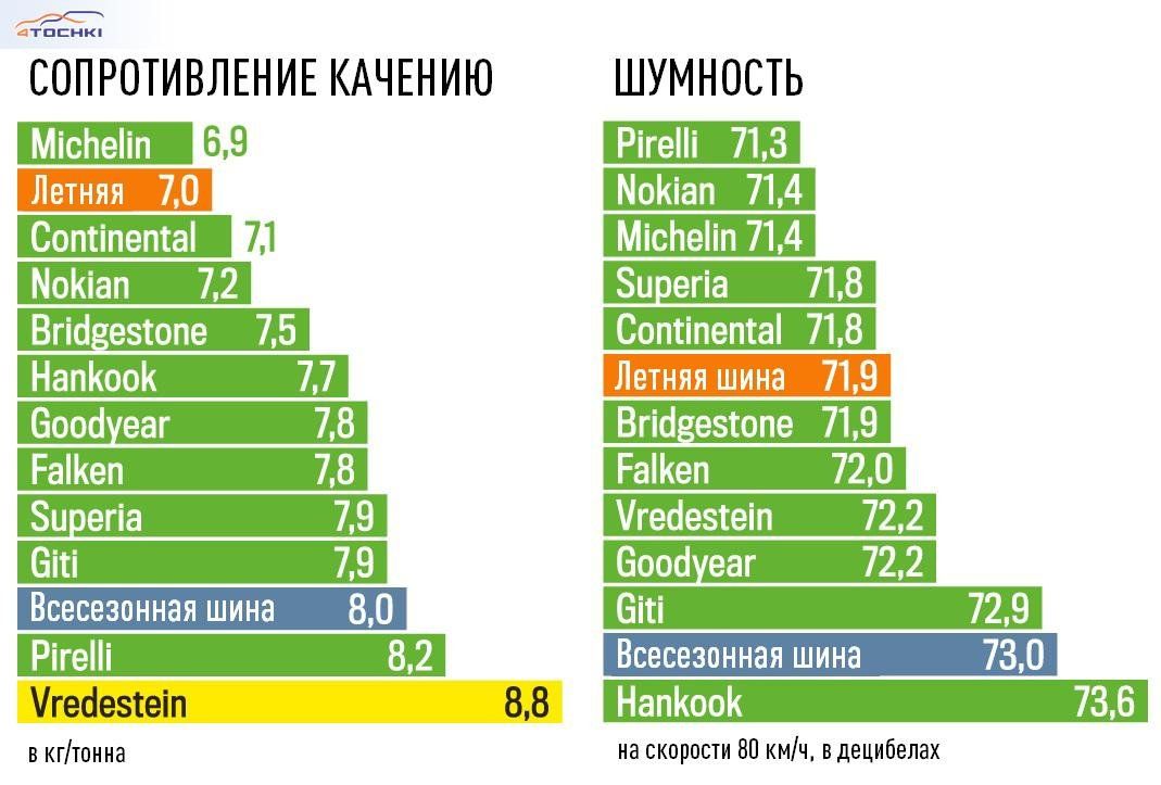 СОПРОТИВЛЕНИЕ КАЧЕНИЮ. С топ-результатами Michelin и Continental зажимают летнюю шину в клещи. В то время как большинство участниц идут почти ноздря в ноздрю в середине таблицы, Vredestein испытывает в этой дисциплине особые трудности. Безопасность от этого не страдает, но расход топлива - да.