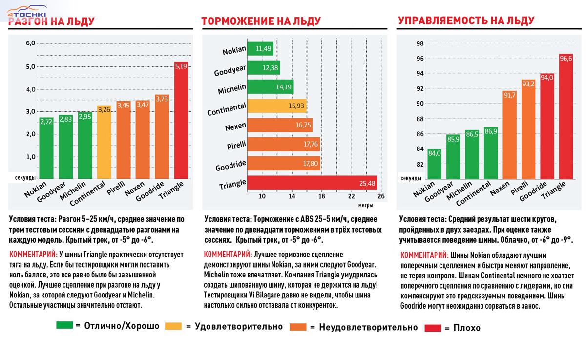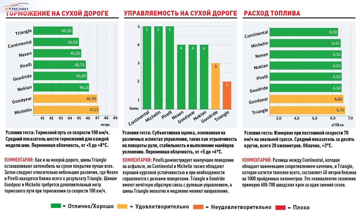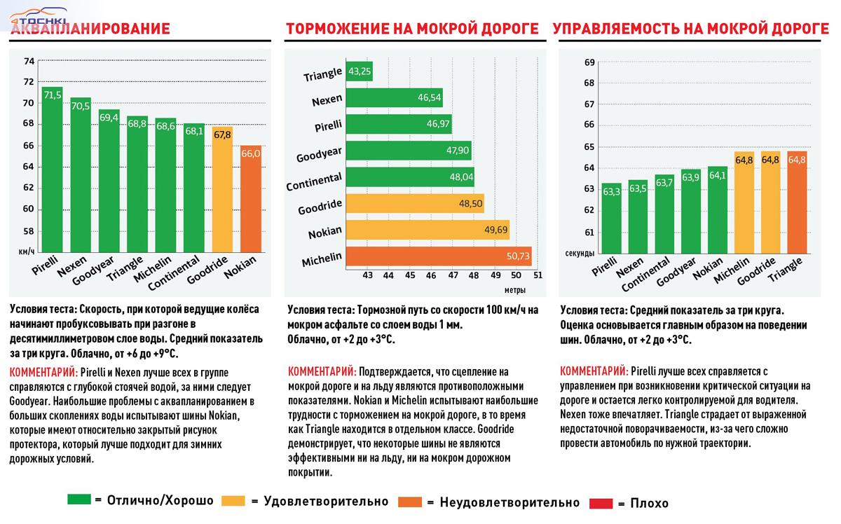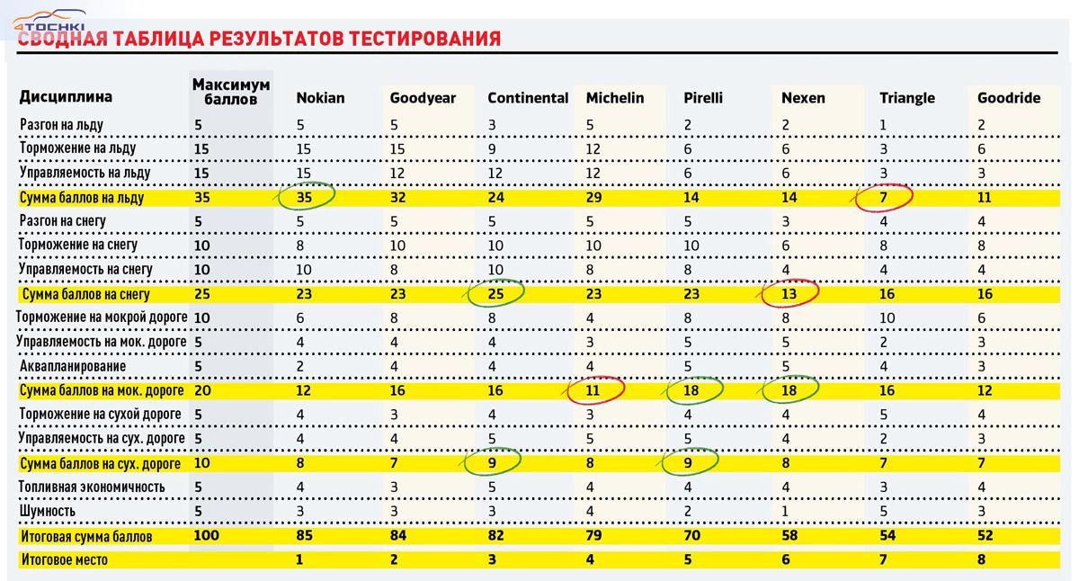 Смотрите не только на итоговую сумму баллов, также сравнивайте шины по тем дорожным условиям, которые вы считаете наиболее важными для себя.