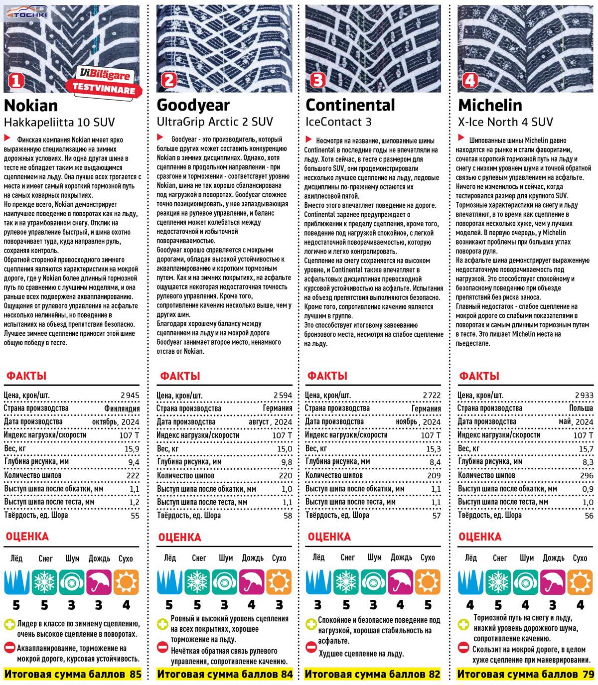 Теги: зимние шины, шипованные шины, тест зимних шин, Vi Bilägare, Nokian Hakkapeliitta 10 SUV, Goodyear UltraGrip Arctic 2 SUV, Continental IceContact 3, Michelin X-Ice North 4 SUV, Pirelli Scorpion IceZero 2, Nexen WinGuard WinSpike 3, Triangle IceLynk TI501, Goodride IceMaster Spike Z-506